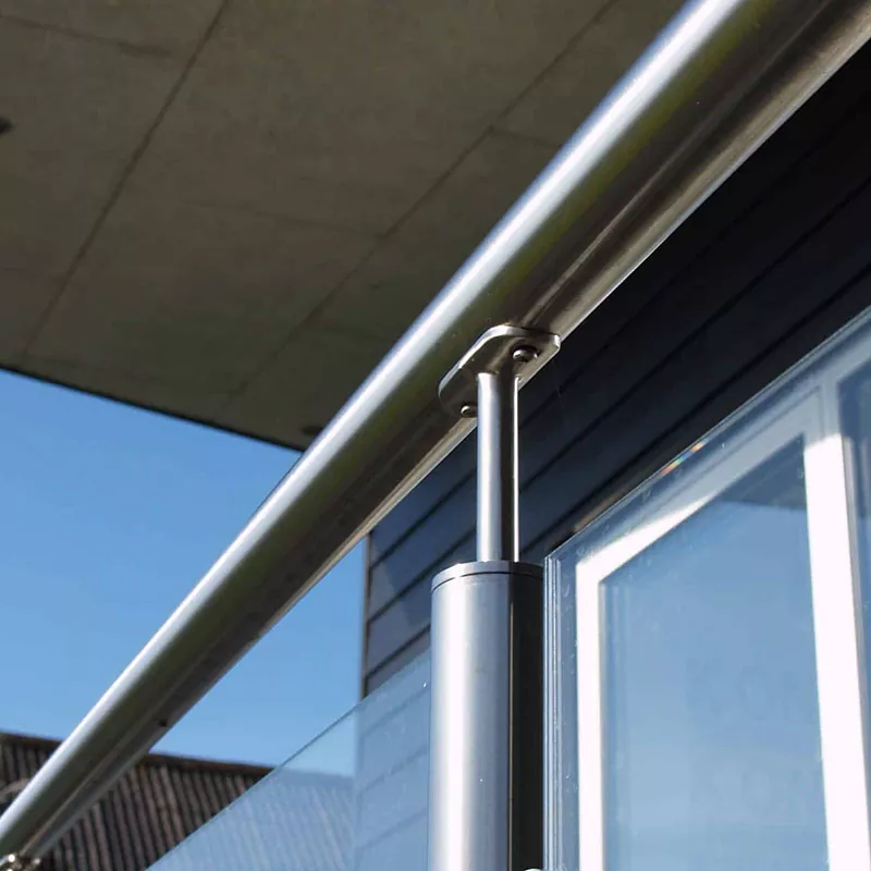 باعتباره العنصر الخارجي للمبنى، فهو مثالي لتصميم الدرابزين بالقوة والمقاومة، مما يجعل الزجاج المقسى و/أو الزجاج الرقائقي المقسى الخيار المثالي، مما يوفر الجمال والتطبيق العملي. يتم تصنيع الزجاج الرقائقي عن طريق ربط طبقتين أو أكثر من الزجاج بطبقة داخلية، وهو مقاوم للكسر ويقلل من خطر الإصابة.