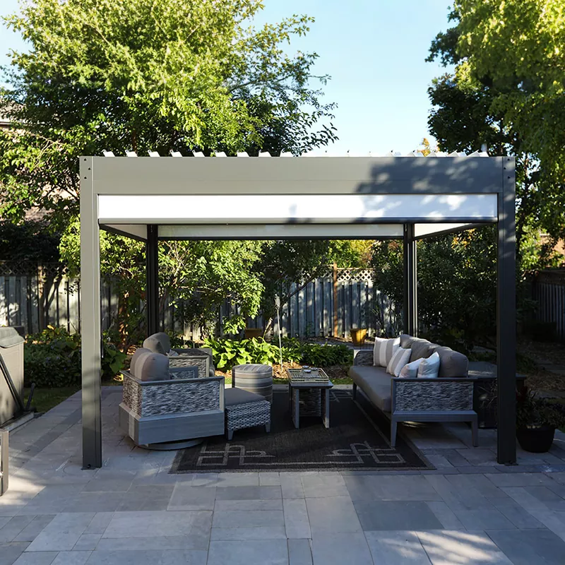 العريشة المزودة بمحركات هي عبارة عن هيكل معماري خارجي غير مرتبط بالمنزل. وهي تعمل كوحدة ذاتية الدعم، وعادة ما تكون مدعومة بأربعة أعمدة رأسية أو أكثر. بفضل تصميمها القائم بذاته، لا تتطلب هذه العريشة المصنوعة من الألومنيوم أي ربط بالمباني الأخرى؛ يسمح هيكلها المستقل بوضعها بشكل مرن داخل الساحات أو المناطق بجانب حمام السباحة أو الحدائق أو الأماكن التجارية، مما يجعلها أحد الأصول الرئيسية لتعزيز قيمة أي مساحة خارجية. علاوة على ذلك، فإن العريشة المصنوعة من الألومنيوم تلبي في نفس الوقت متطلبات المتانة والتعامل مع الوزن الخفيف ومقاومة الصدأ - مما يجعلها الخيار الأمثل لحلول الظل الخارجية.