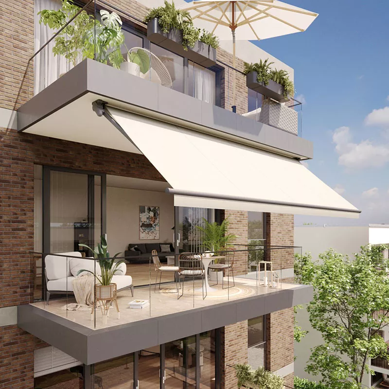 تستخدم Vionta مواد عالية الجودة فقط لضمان الأداء الأمثل. جميع التشكيلات المعدنية مصنوعة من الفولاذ عالي الجودة، مما يوفر متانة إضافية. يتم قياس جميع براميل الأسلحة والأذرع بعناية لتناسب المساحة المتاحة تمامًا. يمكنك النوم بسلام لأن مظلة الكاسيت المفتوحة لدينا يمكنها أيضًا تحمل مختلف الظروف الجوية غير المتوقعة. تضمن Vionta أن مظلة الشمس الخاصة بنا مقاومة للماء والأشعة فوق البنفسجية والبقع. تدرك Vionta أيضًا أن احتياجاتك قد تتغير كل يوم حسب الطقس. ولكن لا داعي للقلق! مع مظلة الكاسيت المفتوحة لدينا، سواء تم تشغيلها كهربائيًا أو يدويًا، يمكنك فتحها بالكامل أو توسيعها إلى الحد الذي تراه مناسبًا. الخيار لك!